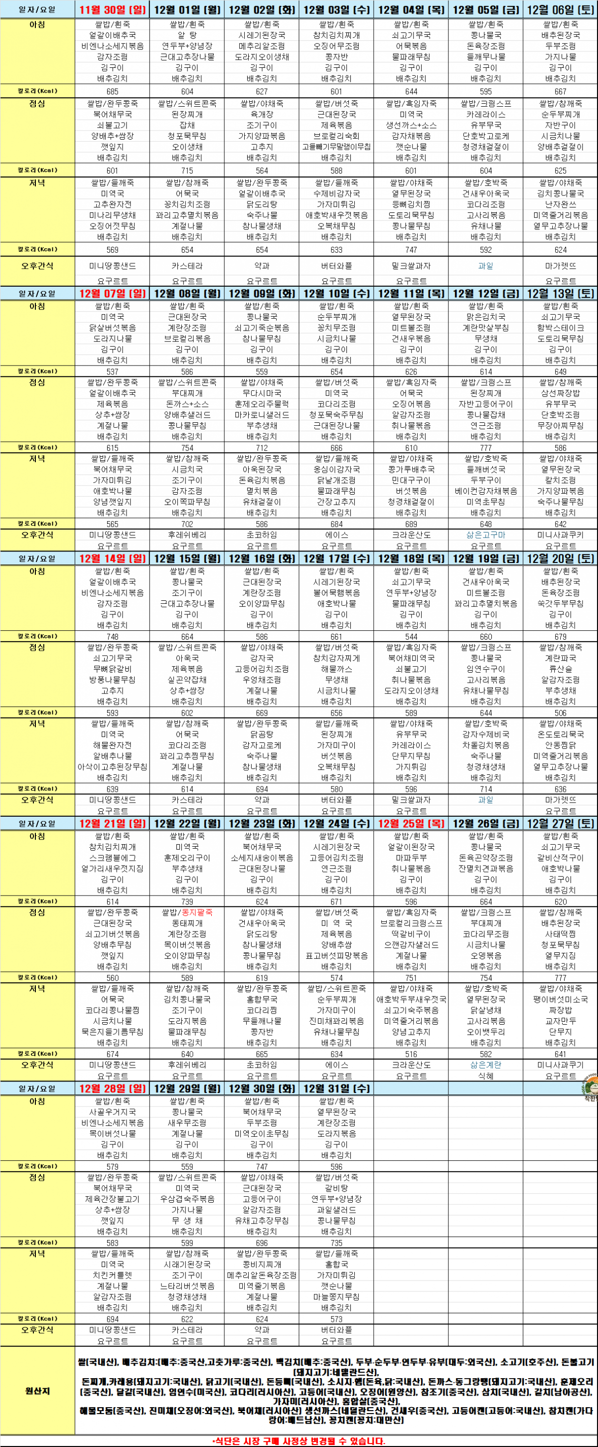 ♡12월 맛있고 건강한 식단표♡